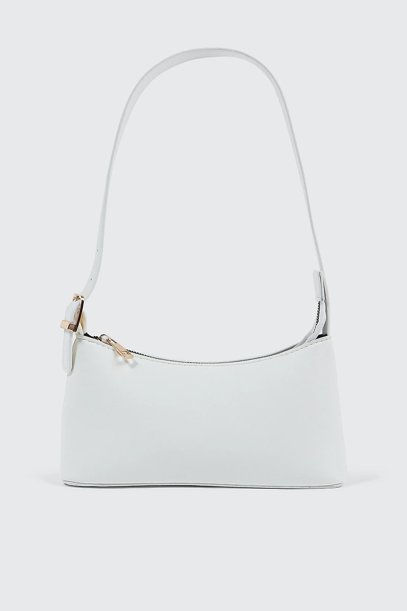 Ardene Baguette Bag with Adjustable Strap in White | Faux Leather/Polyester/Faux Suede