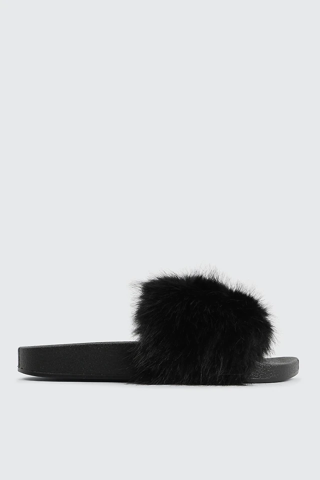 Ardene Faux Fur Slippers in Beige | Size | Polyester