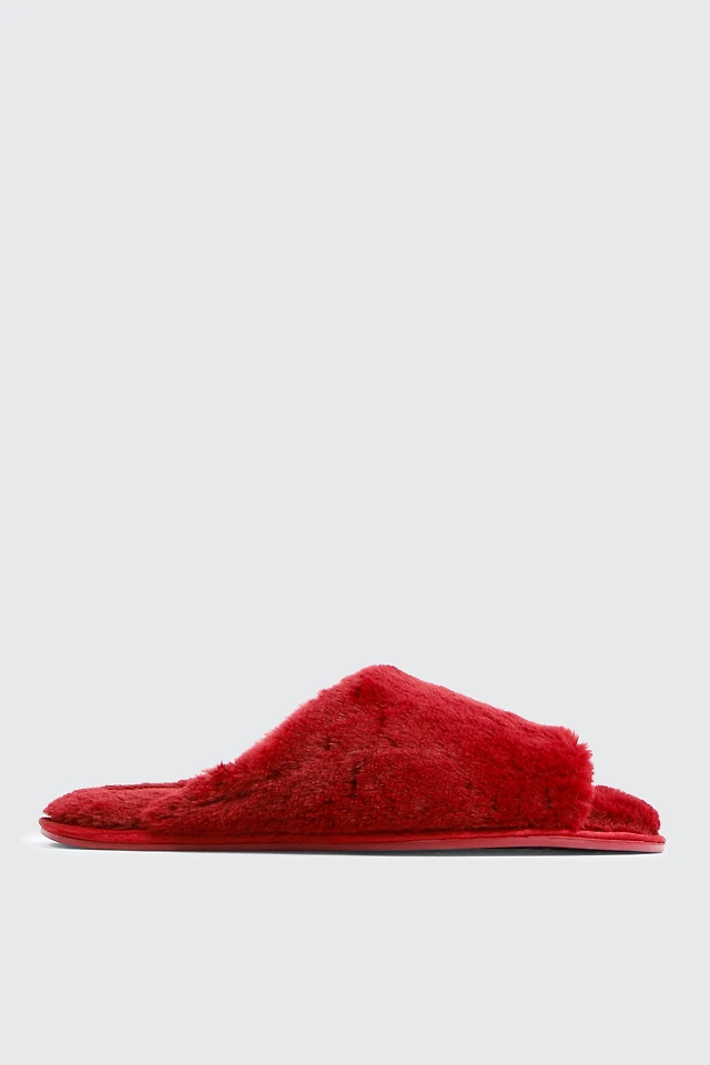 Ardene Faux Fur Slippers in Red | Size