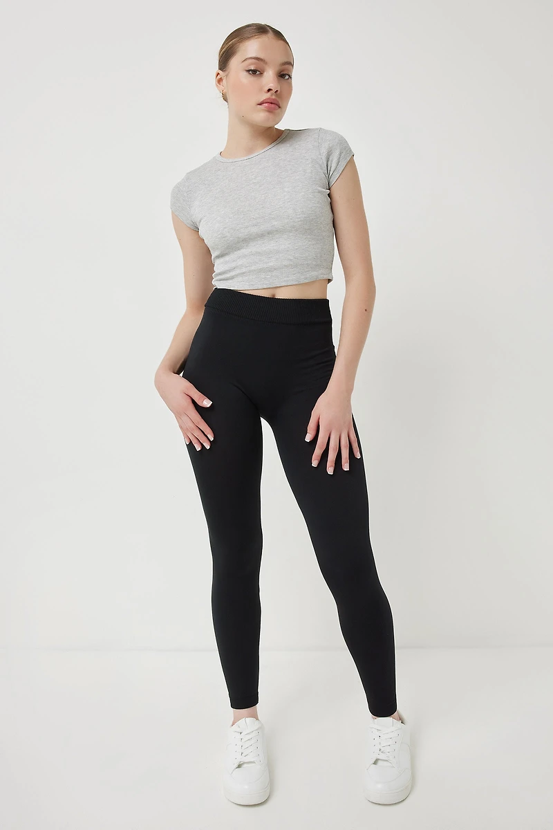 High-waisted leggings. Fleece-lined Elastic waistband Model is wearing size XS/SFor XS/S, select SFor M/L, select L | Ardene Fleece-lined Leggings in Black | Size Small