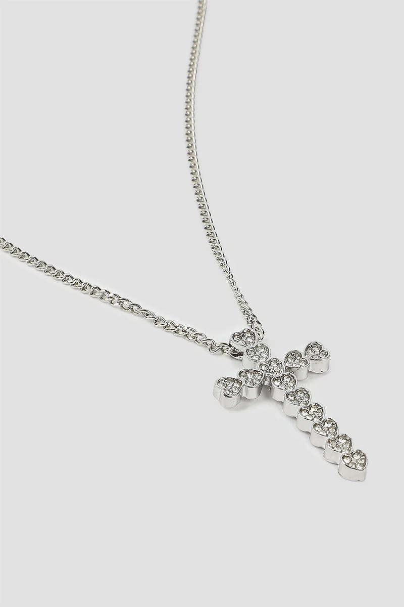 Chain necklace. Heart cross pendant Lobster clasp | Ardene Heart Cross Chain Necklace in Silver