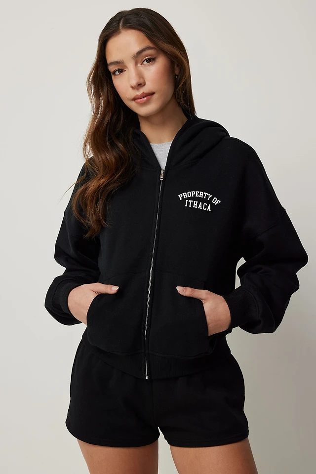 Ardene New York Zip Up Hoodie in Black | Size | Polyester/Cotton | Fleece-Lined