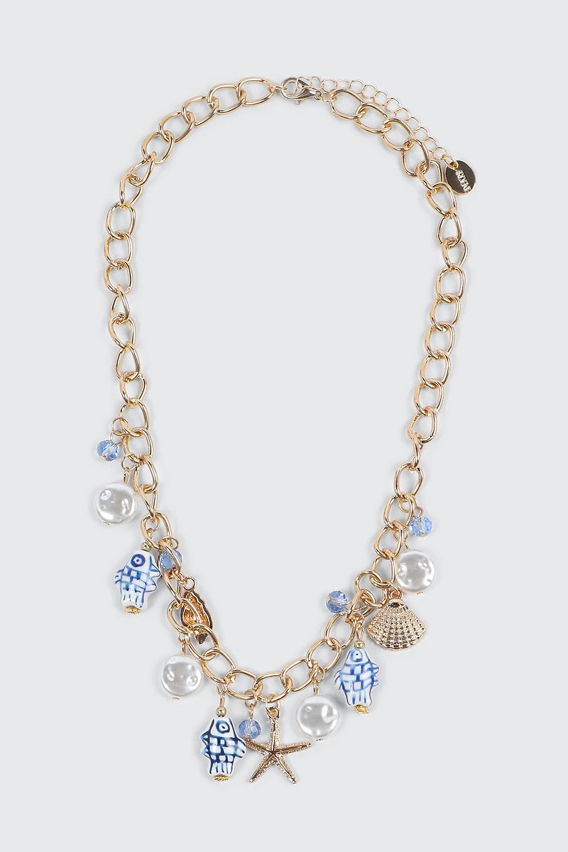 Exclusive piece from our A.C. W collection. Chunky chain necklace. Ocean-themed charms Lobster clasp Avoid contact with water | Ardene Ocean Themed Charm Necklace in Gold
