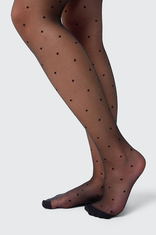 Ardene Sheer Polka Dot Tights in Black | Size Small | Nylon/Spandex