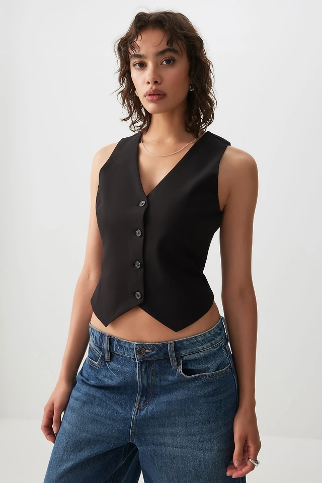 Ardene Tailored Vest in Black | Size Medium | Polyester/Rayon/Spandex