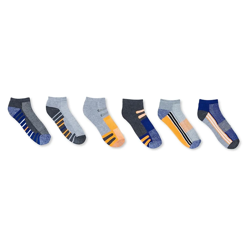 Support his feet as he walks and runs with Athletic Works boys' ankle socks 6-pack. Featuring six pairs in assorted colours and patterns, he'll have no trouble completing an outfit.