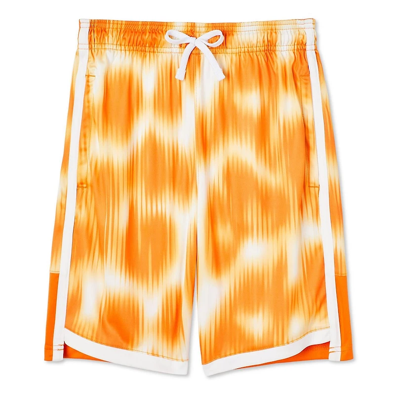 Athletic Works boys’ printed short keeps up with him on those active days. They’re made of interlock knit for a breathable feel when he’s running on the court or field. These shorts are designed with an elasticized waistband with drawstring to stay secure, 2 on-seam pockets, an all-over print, and a contrasting trim for added style. They easily pair with an active tee or tank.
