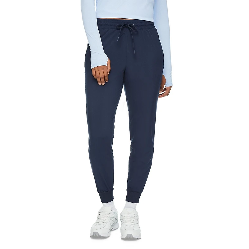 Athletic Works women's ribbed cuff woven jogger effortlessly takes you from lounging around at home to working out in no time. Made of a stretch woven material, they’ll move with you through your gym sessions. These joggers feature an elasticized waistband with drawstring for a custom fit, 2 on-seam pockets to hold your essentials, and ribbed cuffs. Complete the look by pairing them with an active tee or sports bra.