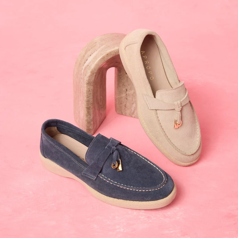 Fall in love with the AYA, a moccasin-inspired loafer that perfectly embodies modern European elegance. Designed by APROPO carefully crafted in Europe, this model is a true ode to softness thanks to its all-over construction in premium genuine suede.