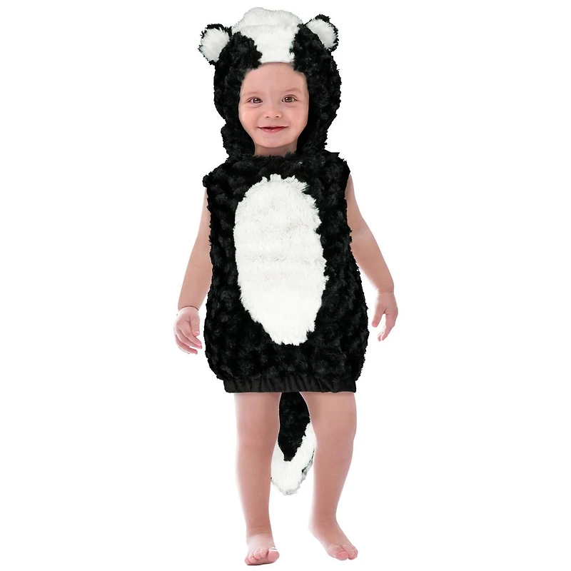 EXCLUSIVE SKUNK! Your little one will feel and look so adorable in this cute and cozy hooded bubble vest. The fabrication is soft to the touch making it comfortable for the baby to wear.This character has been super popluar and now it is your chance to get it. It’s the coziest costume for your little one - the soft, lined and hooded vest will be sure to keep baby warm and comfy while you're out trick or treating. GREAT for photoshoots as well!