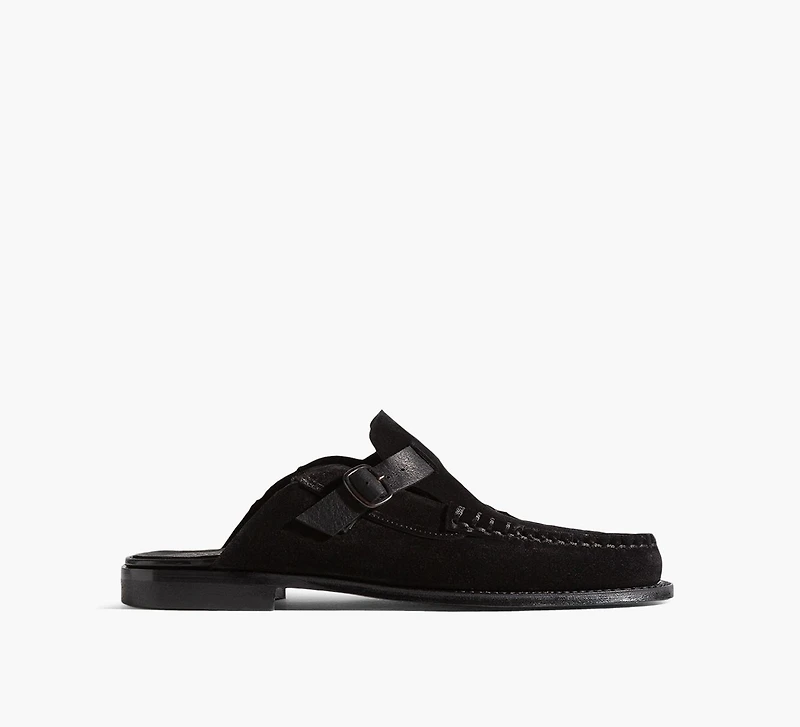A modern expression of artisanal craft, the HEREU Barraca mule loafer features a streamlined slip‑on silhouette with a distinctive buckle strap. Crafted from unlined full‑grain double‑face Italian suede, it’s hand‑sewn using traditional moccasin construction. A stitched leather outsole enhances flexibility and durability, making it an effortless everyday essential, handmade in Spain.