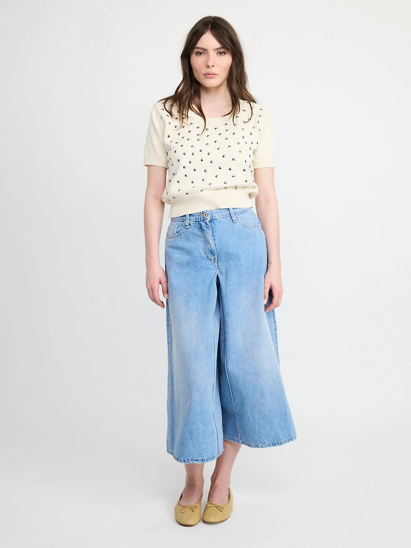Elevate your everyday wardrobe with this beige fine studded sweater. Featuring delicate studs across the fabric and a classic round neckline, this piece combines understated elegance with modern edge. Perfect for layering or wearing solo, it transitions seamlessly from casual days to evening outings. The refined studded detailing adds visual interest without overwhelming your look, making it a versatile staple for any season.