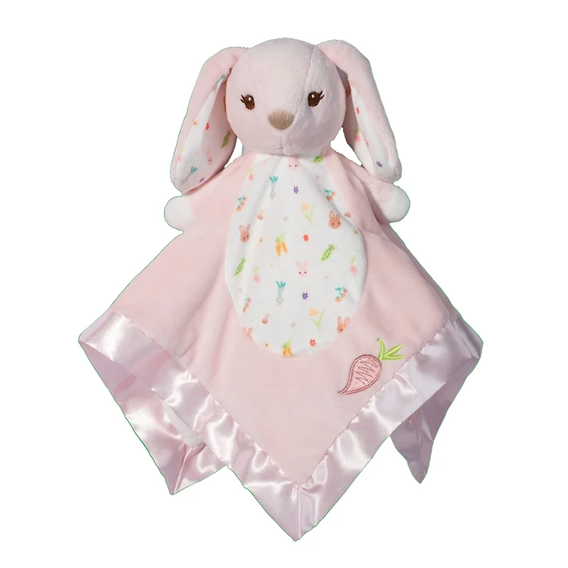 This adorable snuggly bunny is made from a lush combination of velvety plush fabric and silky satin for a feel your baby will love to cuddle! Parsnip’s spring pattern, soft pink color, and floppy ears will be enjoyed by both infants and parents alike.