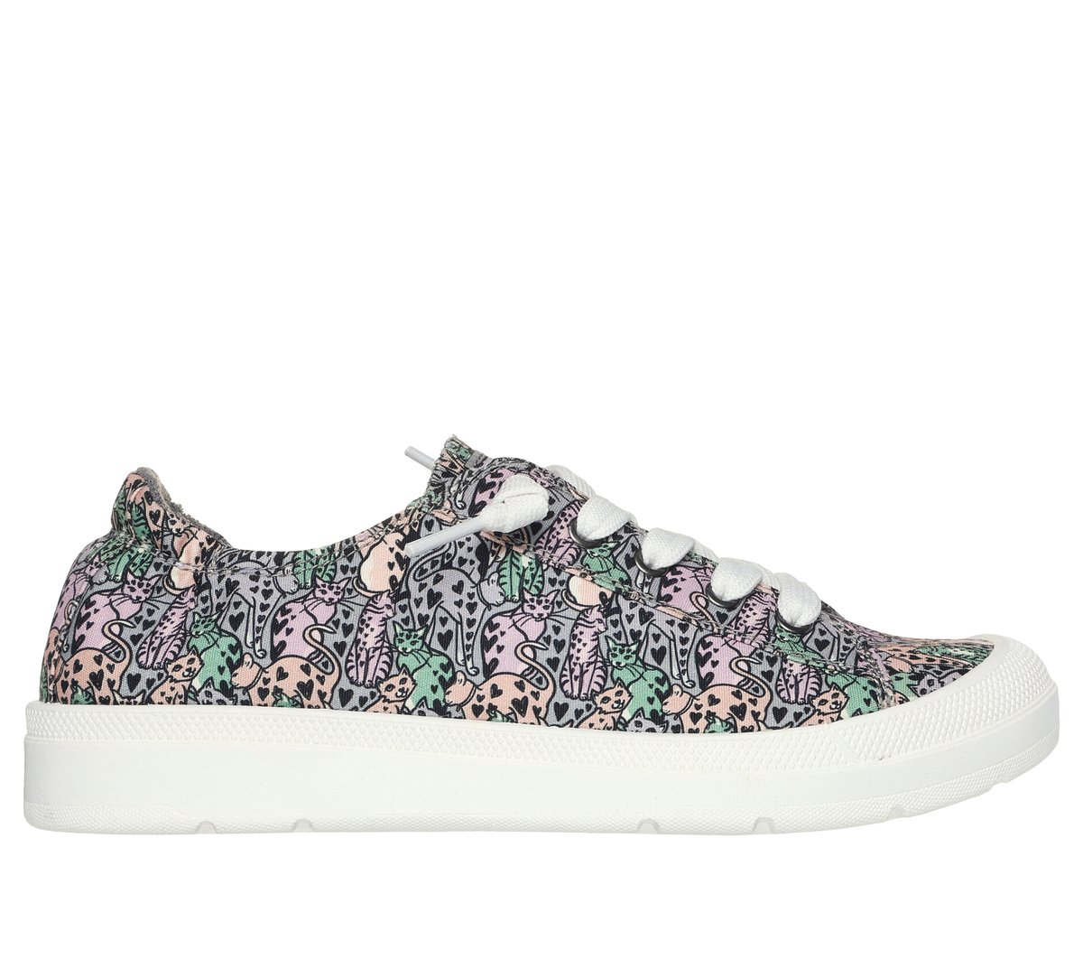 Purrrfect style and comfort make a perfect pair in BOBS from Skechers™ BOBS Beyond - Just Kitten. This casual design features a cat print canvas upper with a pull-on style with faux laces and a cushioned Skechers Memory Foam™ insole.