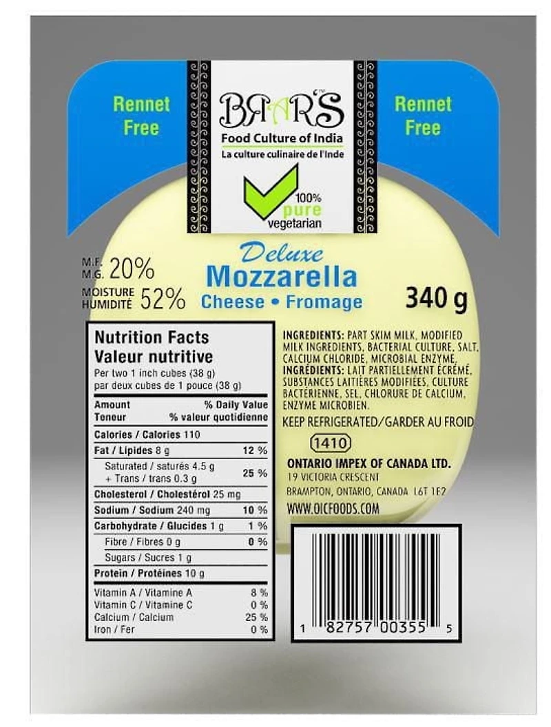 BRAR'S DELUXE MOZZARELLA, 100% VEGETARIAN, RENNET FREE