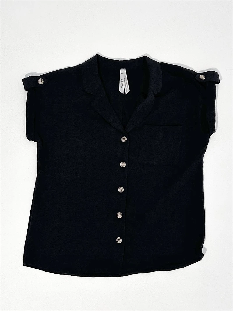 Classic and versatile, this trendy buttoned-down blouse made in comfortable fabric is the perfect top to pack for any occasion. Details Button closure Stretch fabric V neck Material and Care Composition: 100% Polyester Machine wash