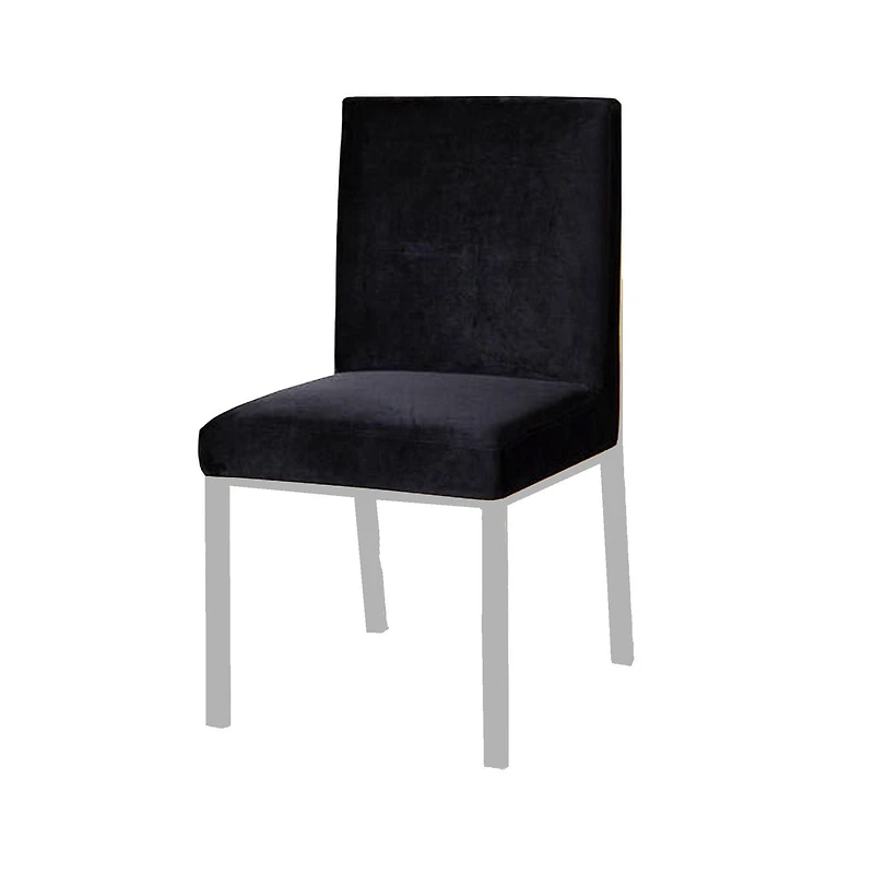 A velvet fabric seat with stainless-steel legs and laser-cut back is a stylish and modern piece of furniture. The velvet fabric provides a soft and comfortable seating surface, while the stainless-steel legs provide durability and stability. The laser-cut back adds a unique and intricate design element that sets this piece apart from other chairs or seats. Overall, this combination of materials and design creates a beautiful and functional piece of furniture that would be suitable for any modern living space.