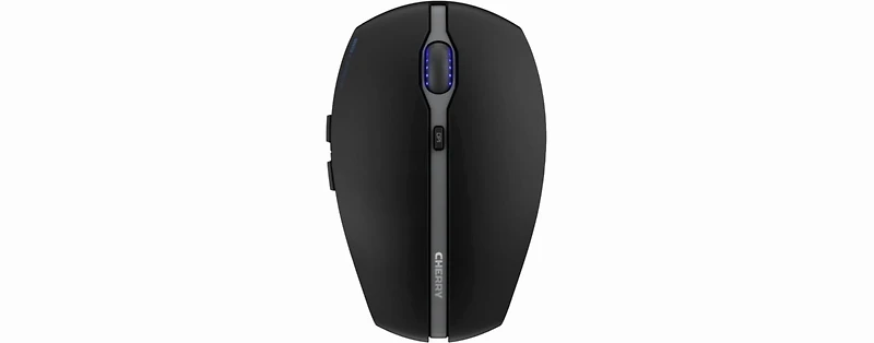 CHERRY Gentix BT Effortless connection via Bluetooth - One mouse for everything By pressing the Bluetooth button on the underside of the wireless mouse, you can easily connect it to up to three devices, such as a PC, laptop, tablet, smartphone or even smart TV. The resolution of the wireless mouse is adjustable in 2 steps using the DPI button. The switchable, highly precise optical sensor offers enough precision and speed with 1000 / 2000 dpi to make every user, even those with very high demands, quite happy. The blue illuminated scroll wheel provides a visual highlight, which also gives you information about the selected resolution level and the battery status.