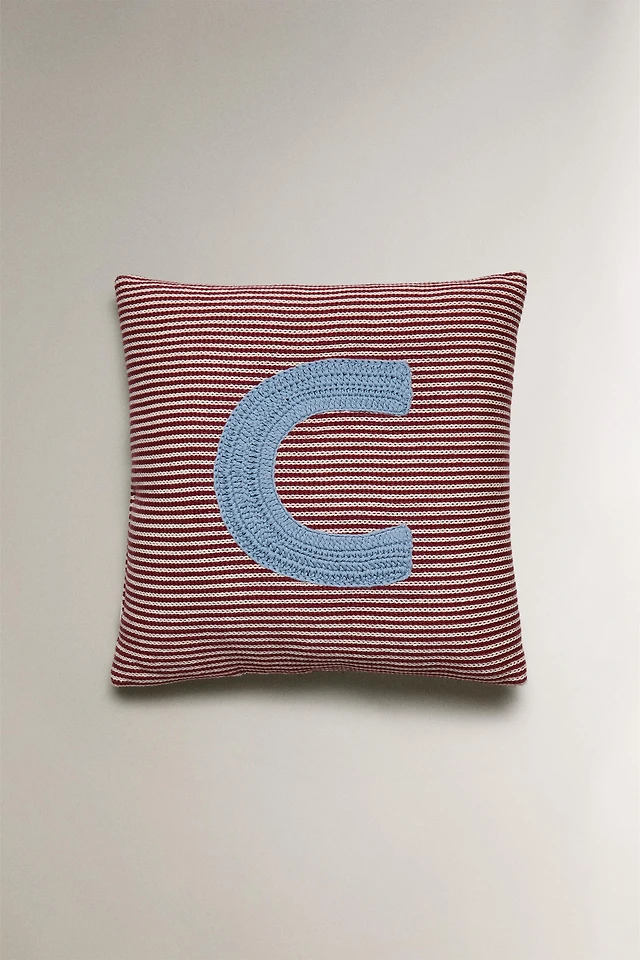 CHILDREN'S EMBROIDERED LETTER THROW PILLOW