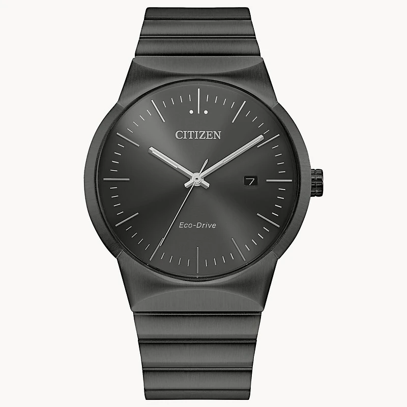 Axiom's refined yet sleek design offers a day-to-night fashion option for the avid trendsetter. This model features a gold-tone stainless steel bracelet with a three-hand black dial, gold-tone accents and date display. Water resistant to 30 metres. Featuring our Eco-Drive technology – powered by light, any light. Never needs a battery.