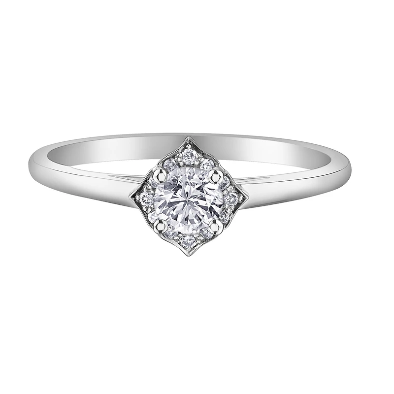 A round cut Ladies Cocktail style ring from Canadian Diamonds Éclat du Nord - with a total weight of 35 points in 10k gold