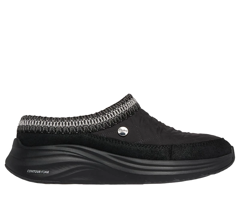 COMFORT IS A TECHNOLOGY™ Slide into innovative style and ultimate comfort with Skechers Contour Foam™ Boot - Cozy Fit® Cascade. This casual open-back mule features a 3M® Scotchgard® shimmer suede and air-quilted mesh upper with webbing collar trim, Contour Foam™ midsole cushioning, and our signature cushioned Skechers Air-Cooled Memory Foam® footbed.