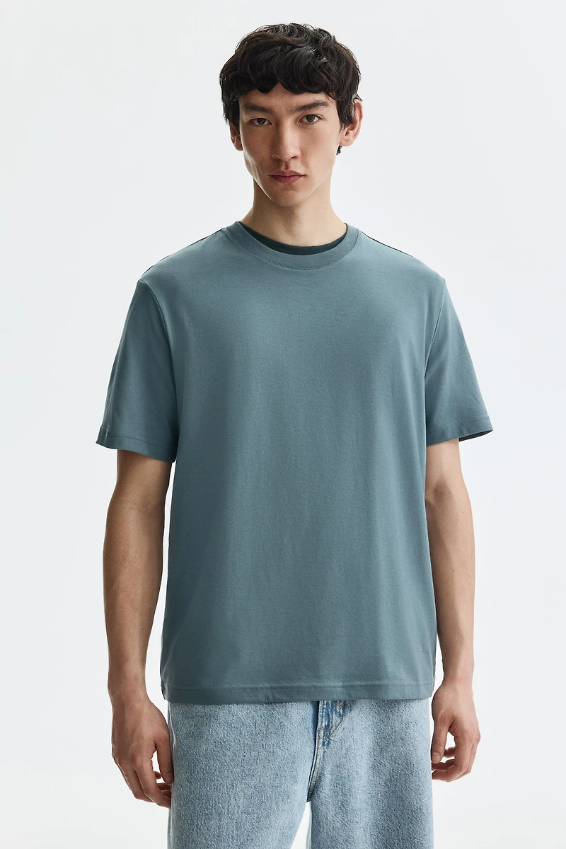 Regular-fit T-shirt in lightweight jersey with a comfortable, classic silhouette. Ribbed crew neck and a straight-cut hem. Made with COOLMAX® fiber – an engineered channelled fiber that wicks moisture away from the body to the fabric surface.