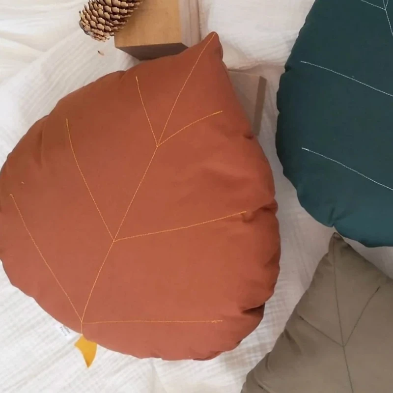 Decorative cushion in the shape birch leaf inspired by the forest for a nature-themed baby room decoration.