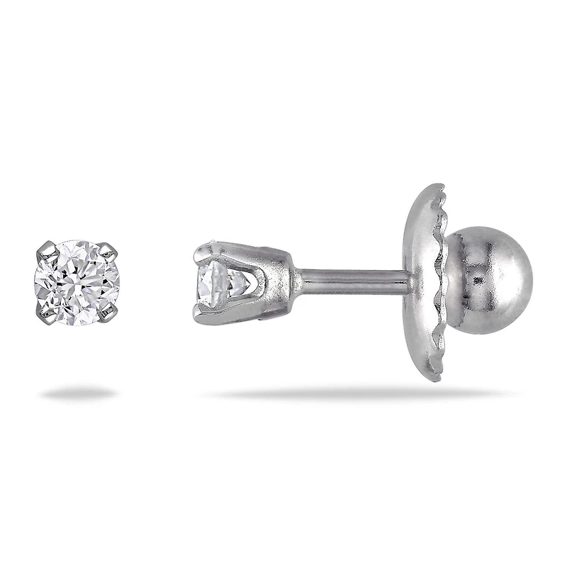 Cutie Pie Jewels 0.10 Carat T.W. Diamond Solitaire 14 K White Gold Girls' Screwback Stud Earrings