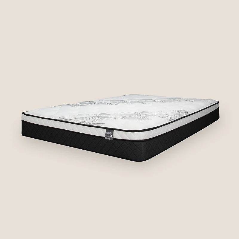 Enjoy the perfect harmony of comfort and support with the Distinction Series Lindsay Mattress—a medium-plush euro top model created for truly restorative sleep. Featuring individually wrapped pocket coils, this mattress delivers precise pressure point relief and adapts to your body’s shape for customized support. Motion is isolated across the surface, making it ideal for couples or light sleepers.The luxurious stretch-knit cover is quilted with soft poly-foam and gel fibers, offering a breathable, cloud-like surface that promotes airflow and keeps you cool through the night. With a foam-encased perimeter, the mattress delivers consistent edge support so you can enjoy the entire sleep surface without feeling unstable near the edges.Eco-conscious in design, the soy-based bio-foam comfort layer is CertiPUR®-US certified, meaning it’s made without harmful chemicals and offers a cleaner, safer sleep environment.Proudly made in Canada, the Lindsay Mattress from the Distinction Series blends plush comfort, targeted support, and environmental responsibility for a deeply refreshing night’s rest.