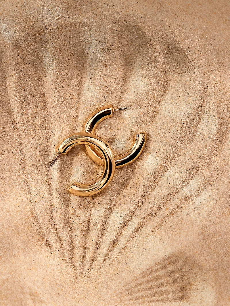 Short hoops with a bold volume, crafted in sleek and polished metal with a regular curvature.