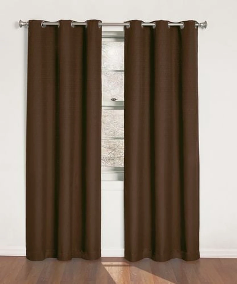 Eclipse offers a line of energy-efficient curtain panels that effortlessly fuse function with style. The Eclipse Poly Chino Curtain is designed to cut out nearly 99 percent of light, so that you can sleep undisturbed. This noise-reducing curtain panel effectively muffles outside noise. On warm days, it cuts out the heat to keep your room cool, while on cold days this panel helps maintain the heat inside the room. So, with this Eclipse window curtain panel, you can save both on your heating and cooling costs.You can easily hang this blackout window panel on a decorative rod. This Poly Chino curtain panel will be ideal for your bedroom, kids room, living room, or office. It is available in a range of colors including Espresso, Navy, Tan, and Sage.