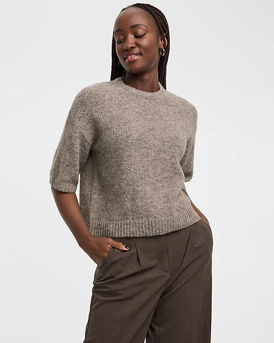 Elbow-Sleeve Crew-Neck Loose Sweater
