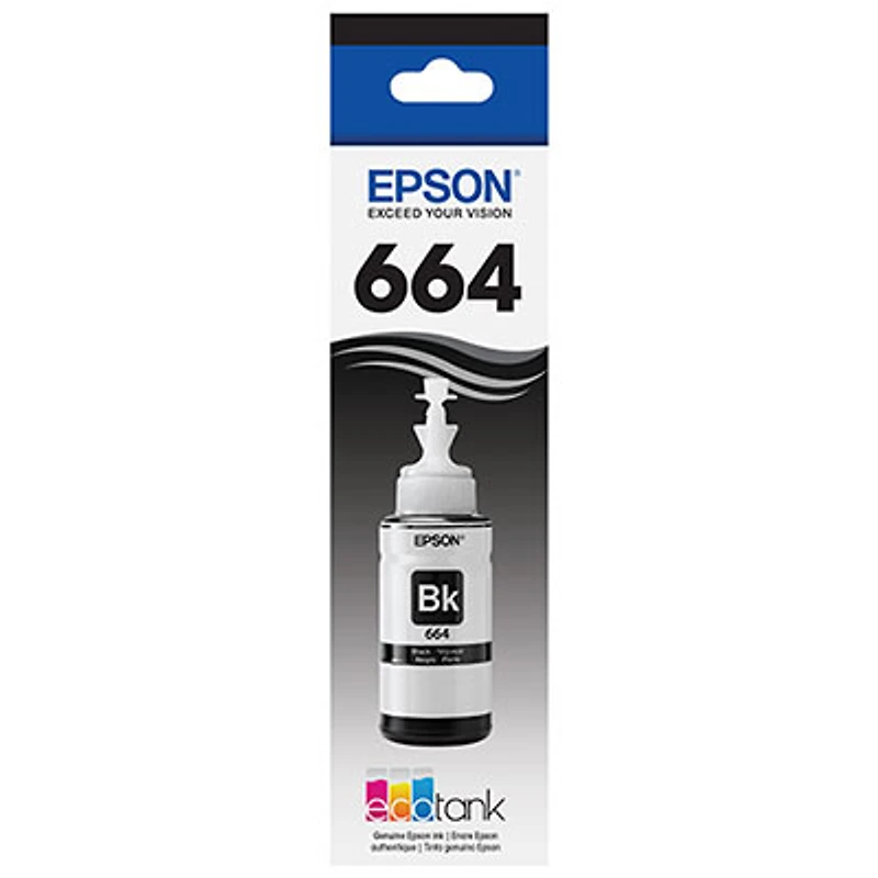 Epson's EcoTank replacement ink bottles offer thousands of vivid prints with uncompromised quality. Ideal for everyday printing, these ultra high-capacity inks go longer between refills, offering outstanding value and convenience. | Epson 664 Black Ink (T664120-S)
