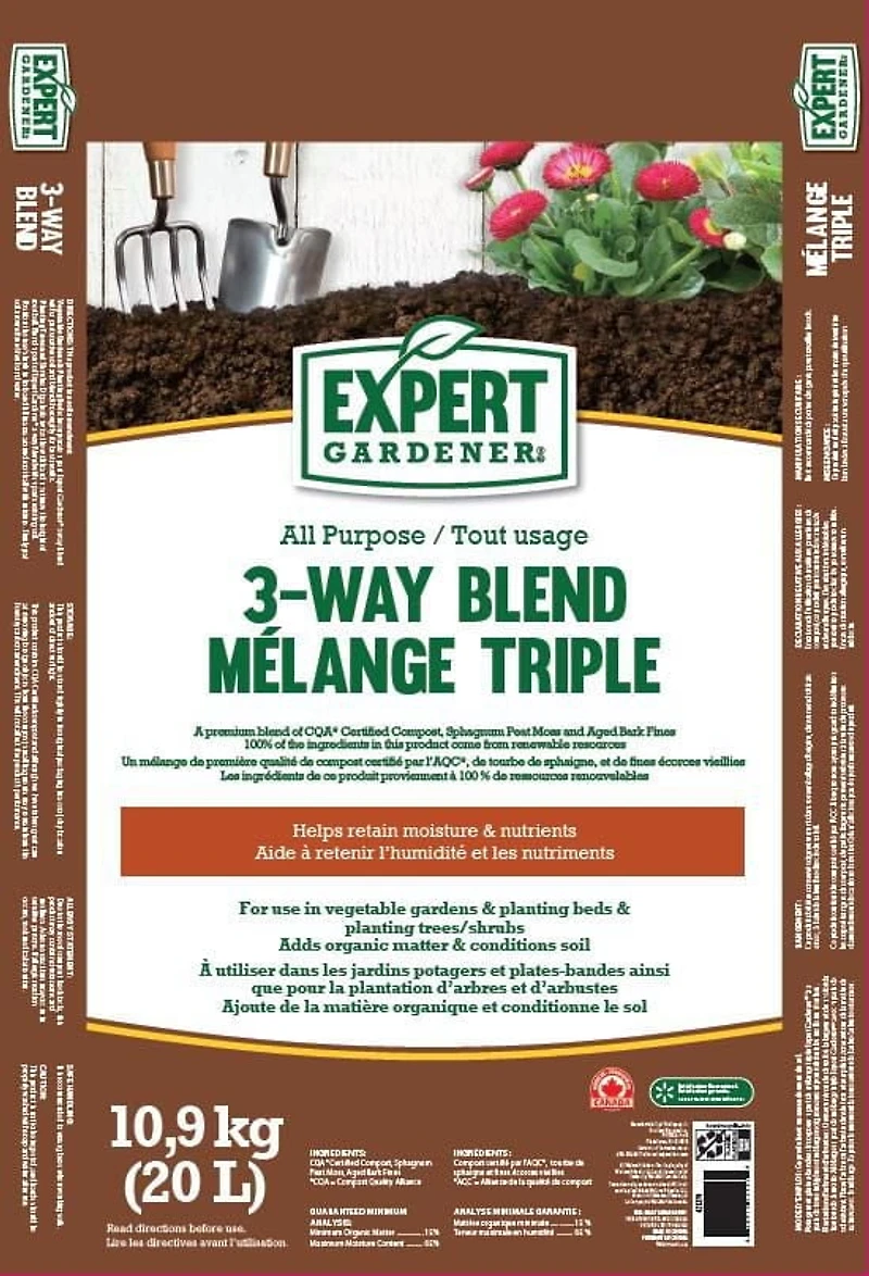 Expert Gardener 3in1 Blend is a blended compost base product that is made by combining bark compost, sphagnum peat moss and sand. Using 3in1 blend as a soil conditioner or amendment and incorporating into your growing beds each year will improve the overall health of your soil environment.