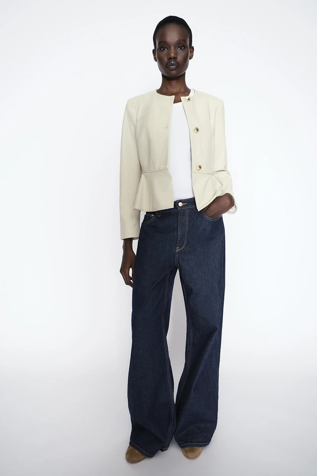 FAUX LEATHER DOUBLE BREASTED BLAZER