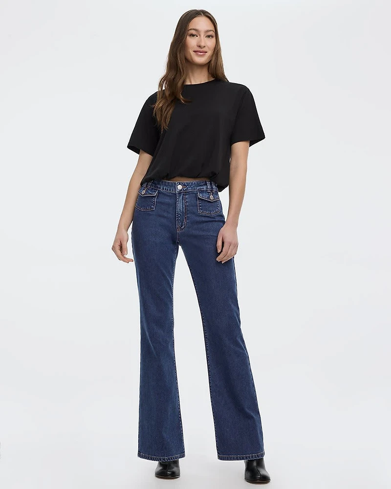 Flare-Leg Mid-Rise Jean with Flap Pockets