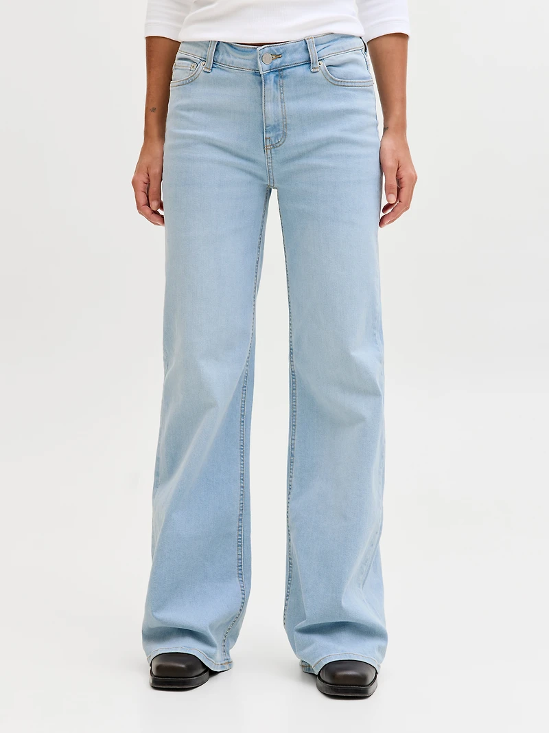 Elevate your everyday style with our essential denim jeans. Crafted for comfort and versatility, these timeless jeans are a must-have for any wardrobe. Perfect for any occasion, they effortlessly complement your favorite other stable pieces. Comfort stretch adds a bit of elasticity for extra comfort and freedom of movement. - Product Type : Flared fit jeans - Closure : Zipper fly - Pockets : Back pockets, Coin pocket, Front pockets - Waist : Mid waist - Wash/finish : Stonewash for a faded, worn look - Fit : Mid waist, regular fitted, flared leg