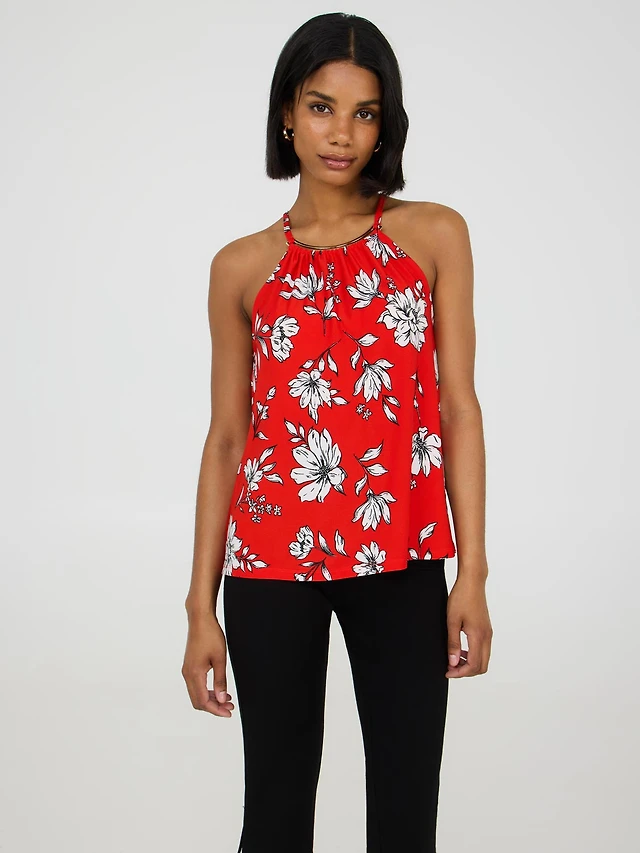 Sleeveless Halter Neck Top & Wide Leg Pull-On Capris