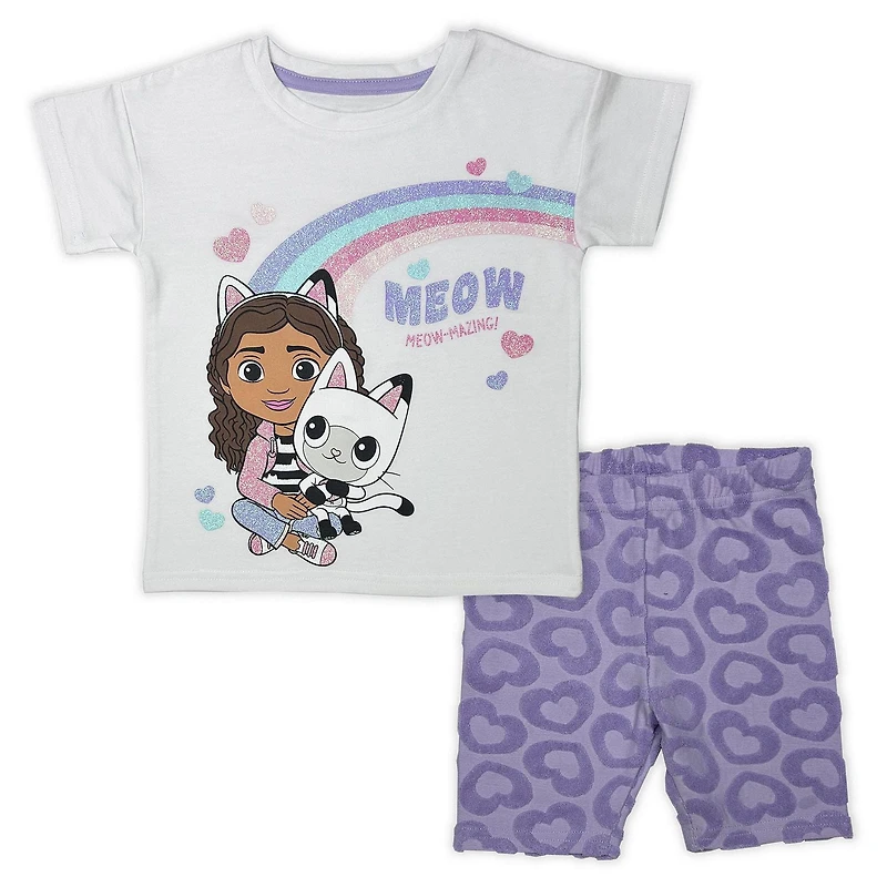 Gabby's Dollhouse Toddler Girls 2 pc set with short sleeve Top and biker short