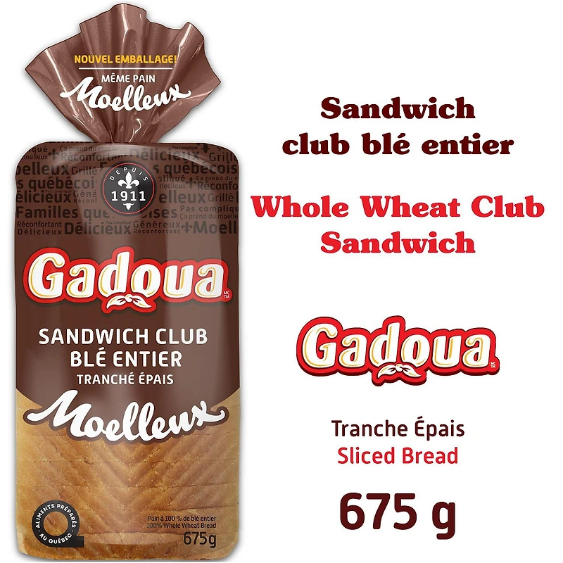 Gadoua Moelleux Thick Slice Whole Wheat Bread, 675 g
