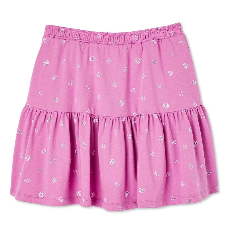 George girls' skort is a great option for the warm weather. Made of comfy jersey knit, it features an elasticized waistband for a secure fit and an all-over print for a fun touch. The ruffled hem adds a stylish element to this piece, while the inner shorts provide extra coverage. Pair the skort with a tank or tee for a trendy outfit that she can wear to school or for weekend fun.
