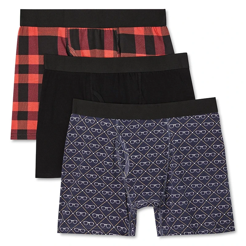 George Boxer Briefs are made for everyday comfort. Designed with soft and breathable cotton spandex knit fabric, these boxer briefs are breathable and move with you. The wide anti-roll waistband won’t dig in or pinch throughout your day. The fabric is sewn with flat seams which helps to avoid chafing and bunching under cloths. Each pack includes 3 pairs of cotton boxer briefs in assorted colours and prints that add more interest to your everyday essentials. George Boxer Briefs provide consistent comfort and durability for your everyday wardrobe essentials. 3 Pairs per pack, available in size S-XL. Machine washable, tumble dry.