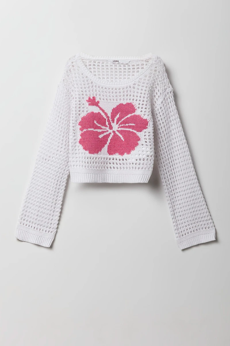 Girls Boxy Jacquard Crochet Sweater
