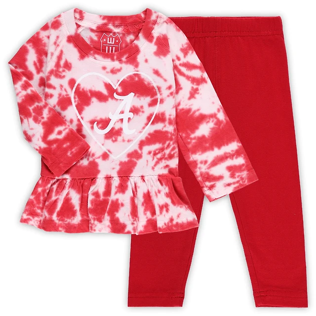 Girls Infant Wes & Willy Crimson Alabama Tide Tie-Dye Ruffle Raglan Long Sleeve T-Shirt Leggings Set