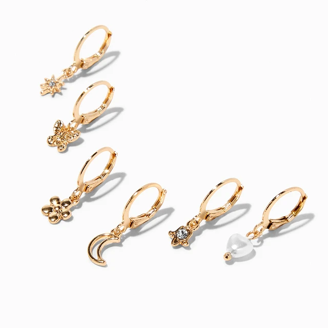 Gold-tone Mixed Hoop Earring Stackables - 6 Pack