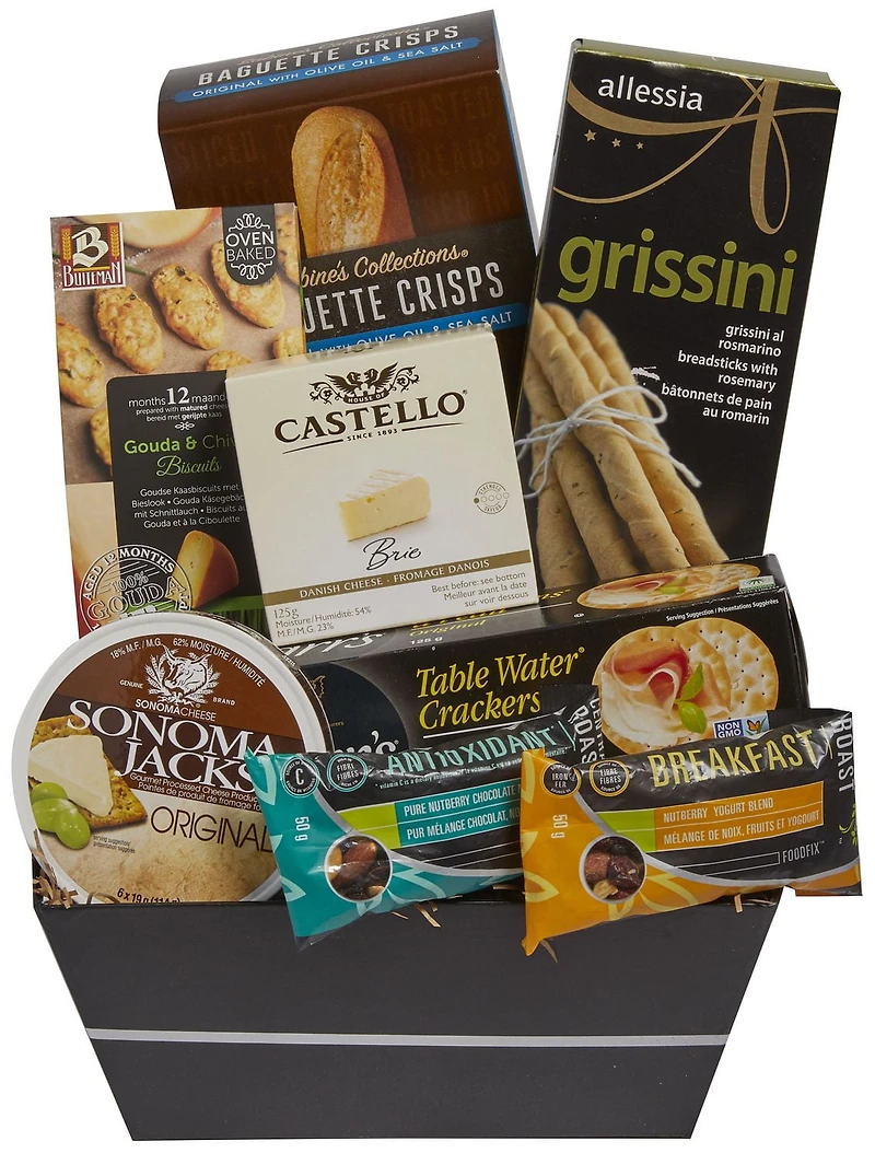 So, you’re a cheese lover. You prefer the savory side of things. Well look no further than this basket. With an assortment of cheeses and crackers, this basket will have you smiling for the whole night.