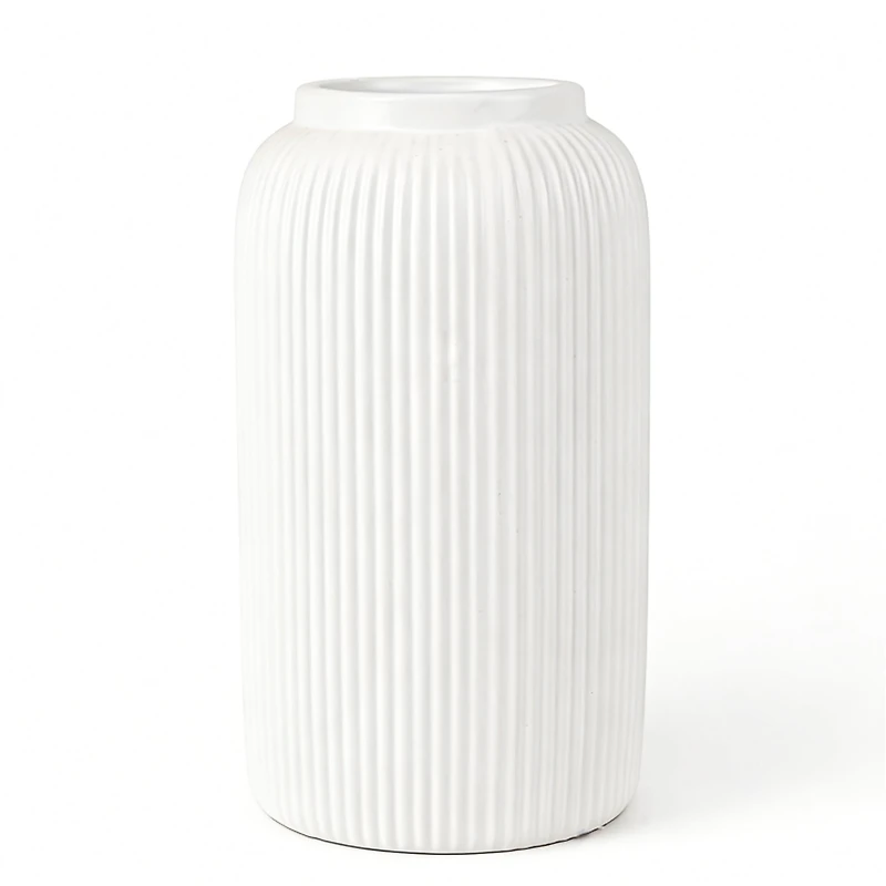 This large striped ceramic vase with a matte finish stands out for its refined texture and contemporary look. Its generous silhouette makes it a strong decorative piece, ideal for holding natural or artificial flowers or being showcased alone. Its timeless design adds depth and elegance to your decor while harmoniously fitting into various interior styles.