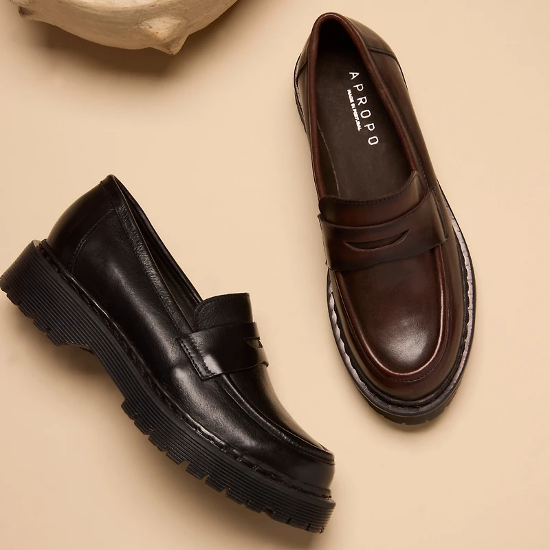 Combining timeless elegance and modern comfort, the GRETA moccasin is designed in genuine leather and made in Portugal. Its thick, notched sole gives it contemporary style and excellent grip, while ensuring optimal comfort for everyday wear. With its revisited classic design and meticulous finish, it's the perfect shoe to take from the office to outings in style. Made in Portugal Genuine leather upper Thick, notched rubber sole Lined interior for added comfort Versatile styling: chic or casual