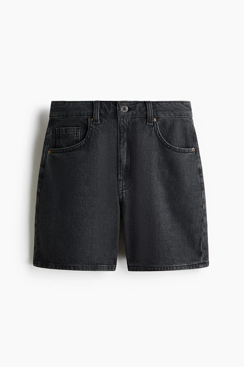 Mid-length, 5-pocket shorts in cotton denim with gentle stretch. High waist and zip fly with button.